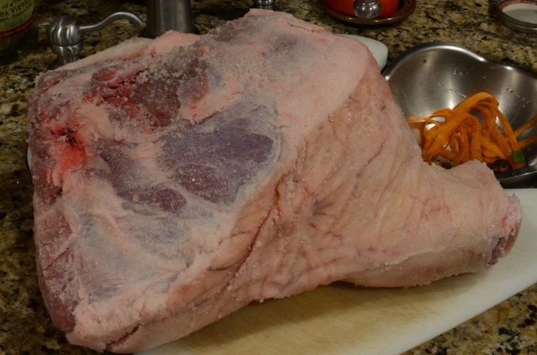 Legs can be sexy, very sexy, especially when they’re coated in salt and left to hang from a floor joist for twelve to fifteen months. I’m talking about curing pork and I’m wondering why it took us so long to try this. We’ve fermented multiple batches of sauerkraut so why not meat? Talk about putting the horse before the cart.