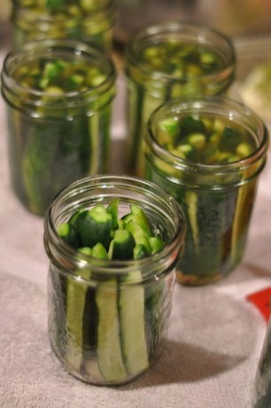 I’ve read that it is important to make sure the cucumbers are carefully re-rinsed to make sure that the dills do not turn out too salty. Again, we’ll see if we washed them well enough. But, I admittedly love salt and some fell victim during the packing process.