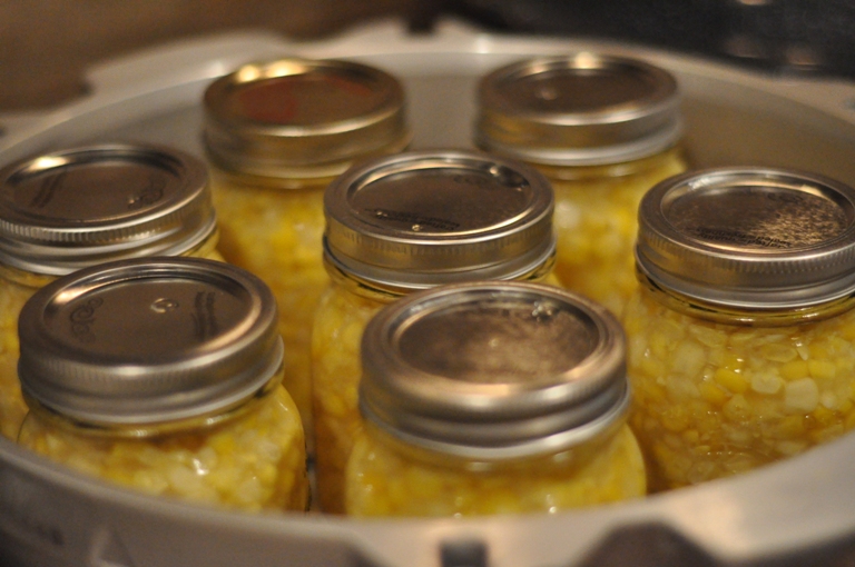 - fill hot sterilized jars with the corn and pack leaving 3/4″ headspace