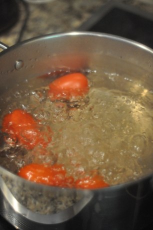 - When blanching tomatoes score the end so that they do not have to spend as much time in the boiling water and make sure to place them in an ice water bath to cool quickly.