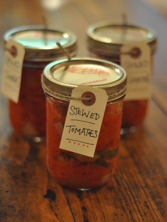 Although we started canning almost 3 weeks ago we are going to start here and periodically work backwards to show you the food we’ve already preserved. Today’s adventure started late and will end later but “Stewed Tomatoes” are one of my favorites. Just the ingredients alone remind me of picking in the fields of the Holland Marsh with my mom and siblings many years ago.