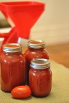Making tomato sauce is a must around here. I love pasta and there is nothing better than your own seasonally canned sauce to finish it off any italian dish. I also like my pasta topped with a little bit of cheese and our stewed tomatoes…but that’s another entry.