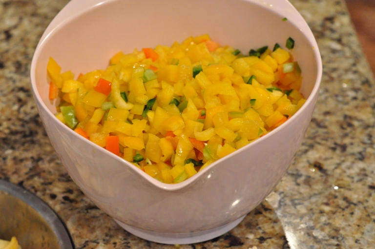 - 1 cup mildly hot banana pepper; seeded and chopped