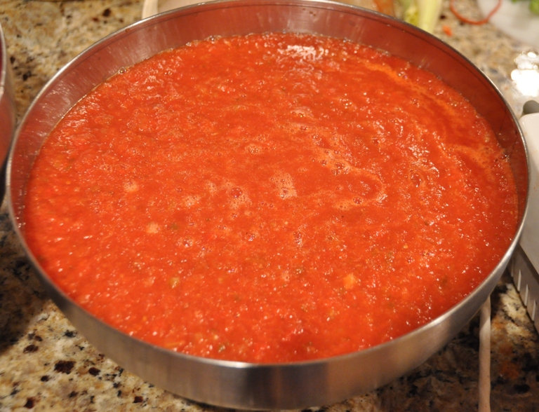 As mentioned in a previous post the European Tomato Press from Lee Valley has significantly decreased the amount of time spent making sauce. The food mill makes the process so much easier and so much quicker.