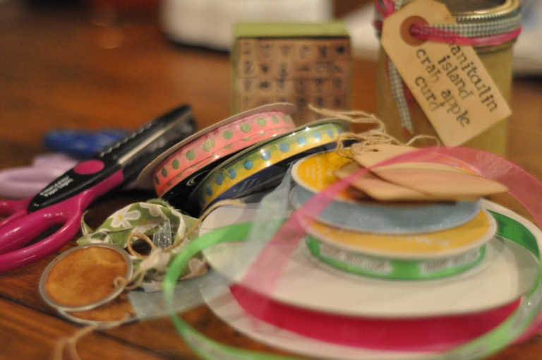 First you will need some hang tags. You can find a unliminted number of hang tags at stores like Staples, Office Depot, or your local craft store. I also keep my eyes open for sale items that will work for example Christmas tags after holiday season is over or last seasons scrap booking items. Secondly, labelling each tag will give them personal touch so be creative. Don’t be afraid to experiment with coloured permanent markers, ink stamps (I have several different ABC stamp pads in an assortment of writing styles), or anything else you like. Lastly, you can use assortment of things to tie your tags onto each jar. For example; jute (a personal favorite), string, yarn, fabric, or ribbon…all of which come in an unlimited number of colours. It’s as easy as that! And, it only takes a few extra minutes but makes each jar look as good as it tastes.