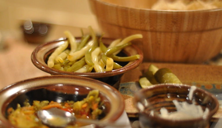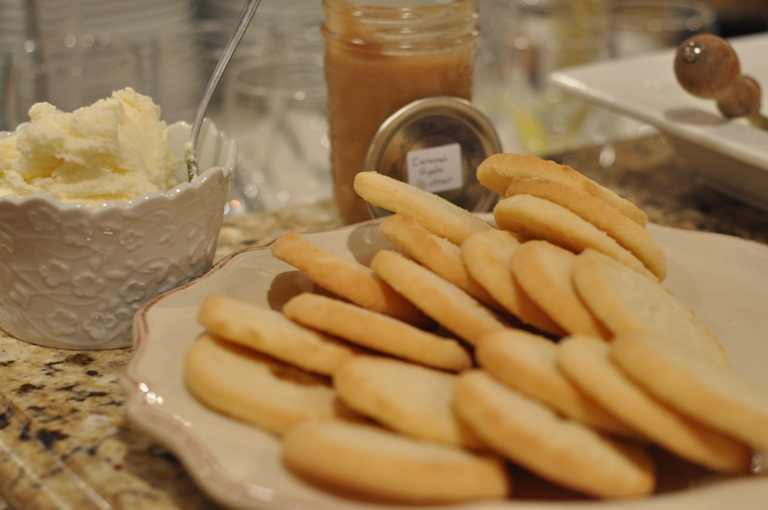 Okay, can I say in a word ~ WOW! ~ The canning party was so much fun.  Everyone came with the most deliciously beautiful jars of homemade goods and the lids were popped off before I even got a chance to take a photo.  As our canners arrived they all got busy in the kitchen opening their jars and pouring the contents into bowls, on plates, and platters.  MmmmMmmmDelicious!