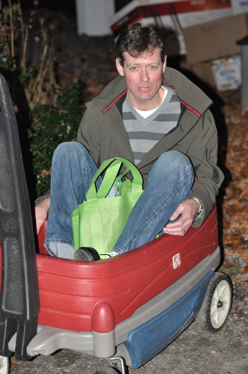 As our party progressed many of us were too full to walk home…but luckily we are a smart and prepared bunch.  Richard is the perfect example of a man who plans ahead and here he is happily getting a ride home.