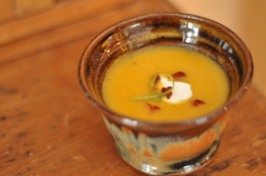 Today, we’ve made 3 different double batches of soup.  Butternut Squash and two different types of puréed carrot soups.  The stove has been going since early this morning with every large pot in our home enlisted into service.  It is quite a sight and a wonderful smell.  I am actually stuffed from sampling, tweaking, and re-sampling all of this soup.  No dinner necessary.
