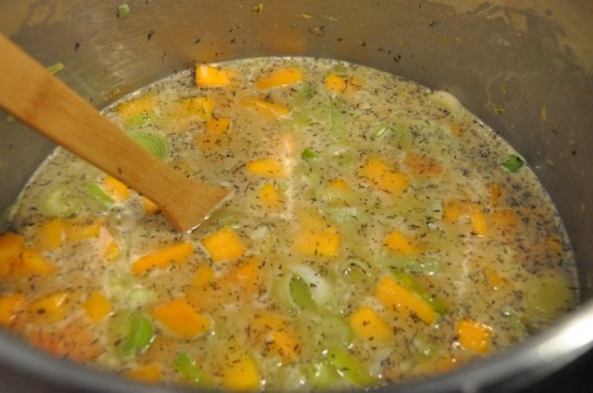 • 1 1/2 teaspoons dried thyme (NOTE: I would cut this back as our soup tastes a lot like Thanksgiving dinner)