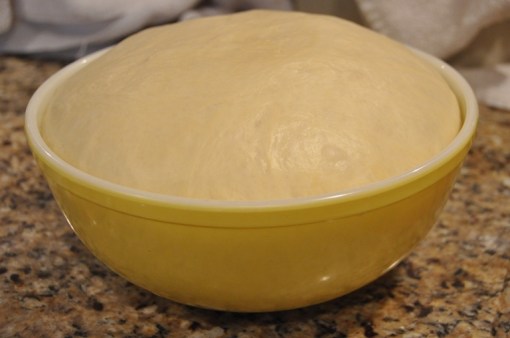 Remove the dough from the bowl and knead for 2 minutes(Ahh that’s more like it!) Re-form the dough into a ball and return to the bowl, cover with plastic wrap and ferment for another hour. The dough should be at least 1 1/2 times its original size.