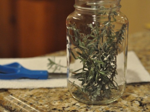 9. To add that finishing touch you can place 1 or 2 fresh stalks of lavender in the bottles before sealing.  This is optional.  (And, may not be an option for me this year as my lavender will likely be covered in too much snow.)