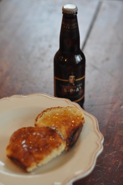 You can taste the beer…I think that some of the fruit beers and strong dark ales with distinctively “hoppy” flavours are perfectly suited for this task. Mmmm…beer jelly. Time for some more toast!