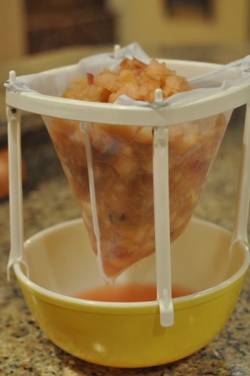 We’ve made two batches of this jelly so far (not with different beer) but with different apples. The first time, we used just Granny Smiths as the recipe indicates and the second time, we used a combination of Courtland apples and Macs. The set of the jelly may be better with the Granny Smiths but the flavour seems the same. But, changing the beer…now, this may really spice things up and give your jelly a whole new taste and dimension. A suggested list of great Canadian beers to try in this recipe can be found at the end of this post. - Collect the juice by pouring this preparation into a fine chinois strainer, pressing lightly on the fruit with the back of a skimmer. Then filter the juice a second time by pouring it through cheesecloth that you have soaked and wrung out. Let the juice run freely. It is preferable to let the juice rest overnight in the refrigerator.