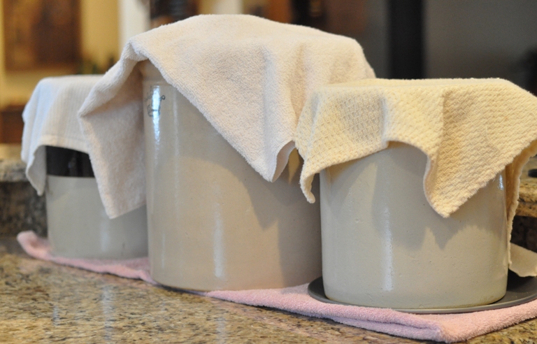 6. Leave the crock to ferment.  Remember to check it every day and skim off any bloom or scum on the top.