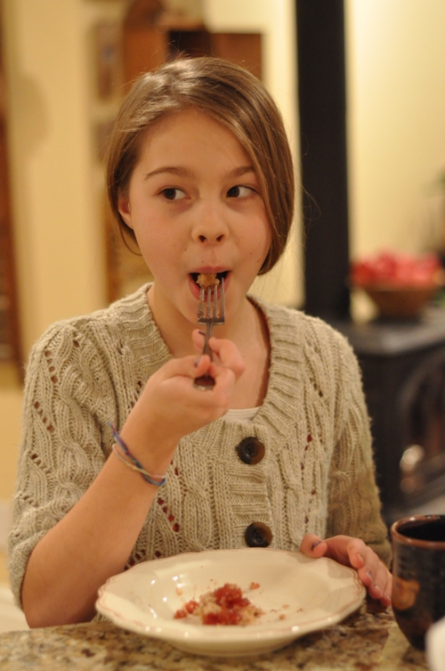 All of our meals contain preserves we’ve put up throughout the year and we think it can make the simplest foods taste great…it’s like you can taste the love in every bite. Last night, to get warmed up we put out some of our kosher dills, baby gherkins, and dilled beans, plus a sampling of Matt’s homemade breads (he put our sauerkraut in the Rye Bread…it made my mouth sing!). And, while we were enjoying these simple but oh so tasty snacks Matt made pizzas using fermented dough topped with our canned tomato sauce. It was delicious.
