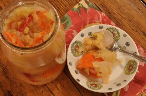 Yeah–for some reason, it didn’t dawn on me that the kimchi would continue at a slower rate of fermentation in the fridge, thus disintegrating. I think that first time we made it, we also grated the carrots, and ended up with a orange soupy mess by the end of the month and a half. Sorry I keep commenting on the kimchi posts, I just completely understand your excitement–it was our first fermentation attempt, and I am so absolutely happy about it on a daily basis.