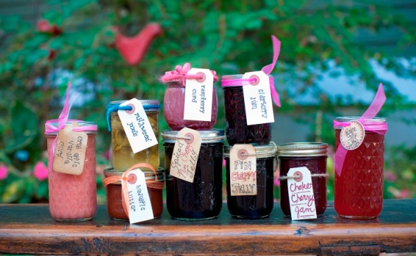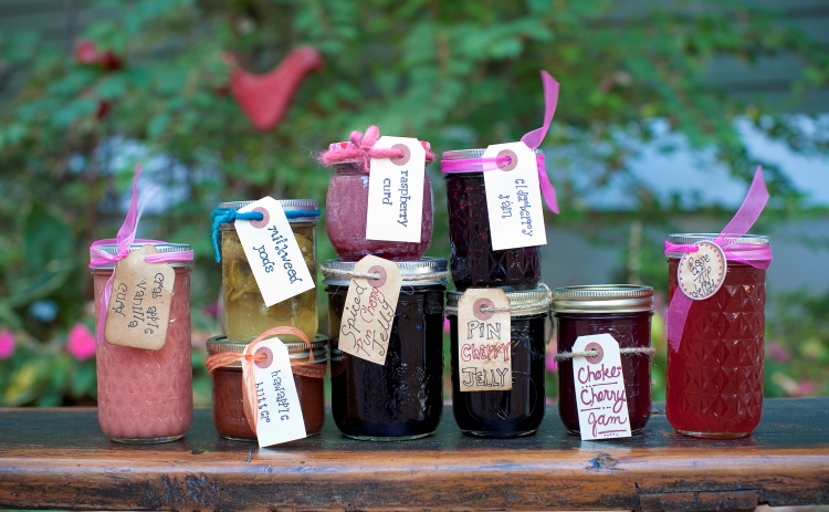 A selection of butters, curds, jams, and jellies that were created from our foraged foods. Photograph courtesy of Turnbull Photography.