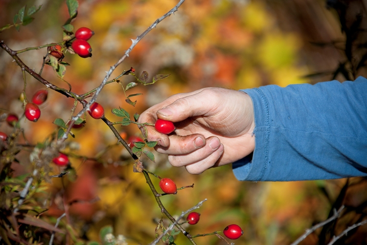 Foraging Rose hips ~ best picked after a good frost...some time in late September. Photograph courtesy of Turnbull Photography.