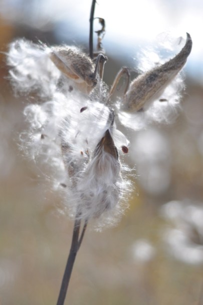 In late summer, fields of blowing milkweed silk give away the location of a potential place to forage the pods.