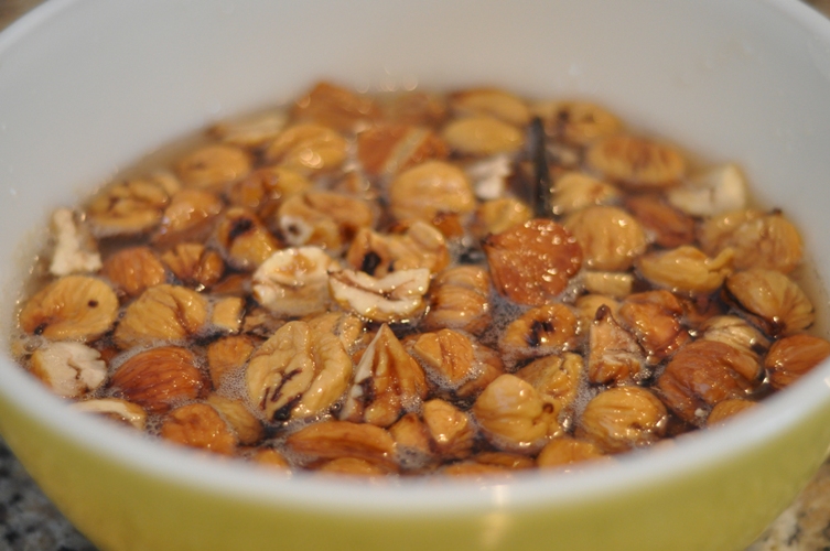 This is not a recipe I will be attempting to perfect now or any time in the future.  Chestnuts are relatively expensive and the initial preparation of this spread is time-consuming and difficult.  Initially, I was curious about creating this jam/spread as it was unusual and used ingredients that we can only get at this time of year.   For now, I’ve satisfied my curiosity.  This experiment may be worth repeating  if, and only ifyou have a glut of nuts that you can get for free and can spend an afternoon doing the tedious job of shelling them with a friend.