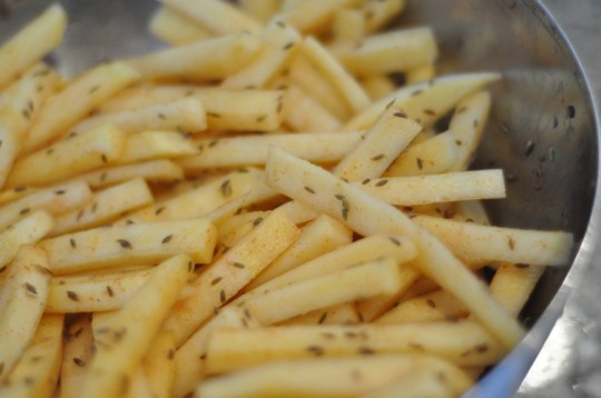 2. Next day, drain the rutabaga, then add the lemon juice, toasted cumin seeds, paprika, and cayenne.  Mix well to ensure the strips are covered in the seasoning.  Set aside.