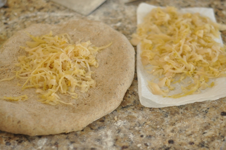 4. it’s not necessary to knead the dough twice with a ten minute interval. Knead your dough just enough to hydrate the ingredients (5 mins is probably good). Over mixing dough containing rye flour can leave your loaves with a gooey texture. Add about one cup of sauerkraut (as dry as you can get it) to the dough during the final 2 mins of kneading.