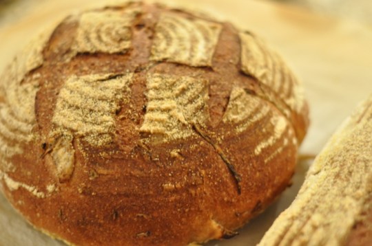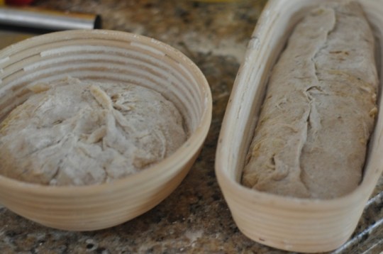 - If the dough was proofed in a basket, gently turn it out onto a parchment lined baking sheet dusted with cornmeal. If you are not using a baking stone, bake the loaves directly on the sheet pan. Just before placing in the oven score the loaves.