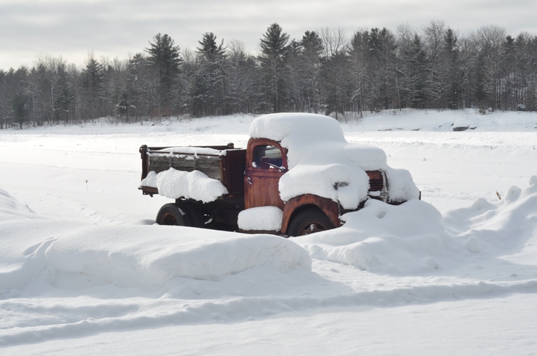 This is the same olde truck we photographed at the marsh this fall...behind the truck are the cranberry fields covered in a couple of feet of snow.