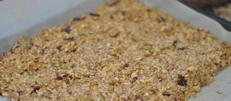 RECIPE FOR HOMEMADE GRANOLA BARS (makes about 20 bars):