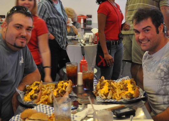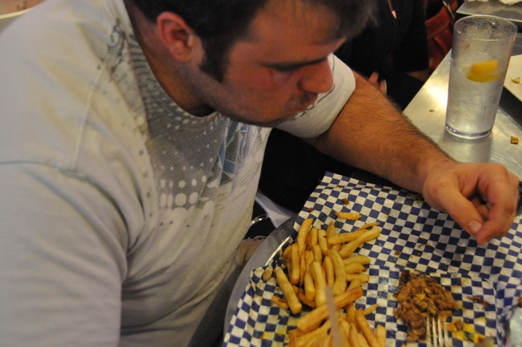 You could choose your challenge.  Matt chose the 3lb burger with a pound of french fries.  Everything on the plate had to be consumed in 45 minutes.  “D” and Boy selected the philly steaks, approximately 2lbs of meat and buns but the fries were just for show.
