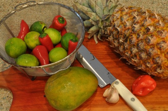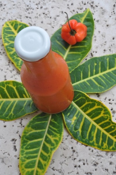 Hot sauce is a great condiment to keep on hand and it can easily be tailored to your liking, to compliment an array of dishes.  This recipe is a carribean inspired sauce that will enhance most mexican and island dishes.  Experiment with different citrus juice or by adding other tropical fruits like papaya or bananas.  Just as long as it’s hot, you can’t go wrong!
