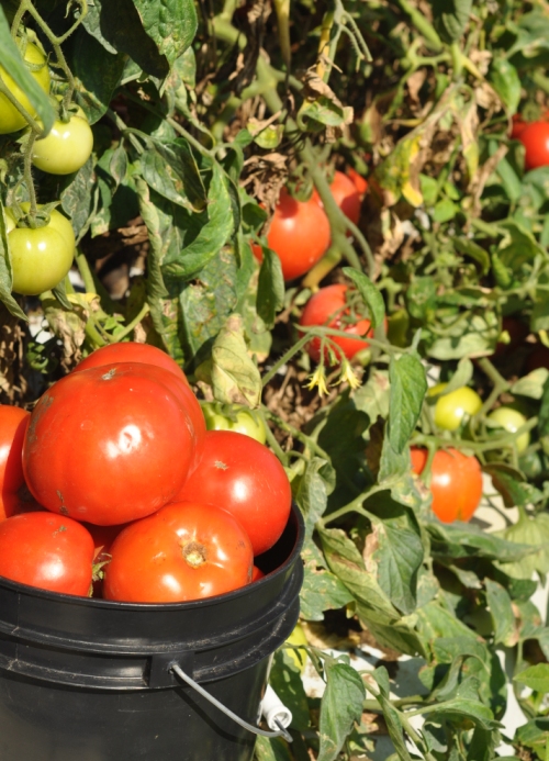 It’s tomato season here in South Florida and the fields are full of plump juicy red tomatoes.  At Bedner’s, pick your own farm, you can forage for a heaping bucket of tomatoes in about 5-10 minutes.  The vines are dripping with green and red tomatoes in a variety of sizes, with most of them being about as large as your fist.  We spent more time taking photos and basking in the sunshine than picking the tomatoes.