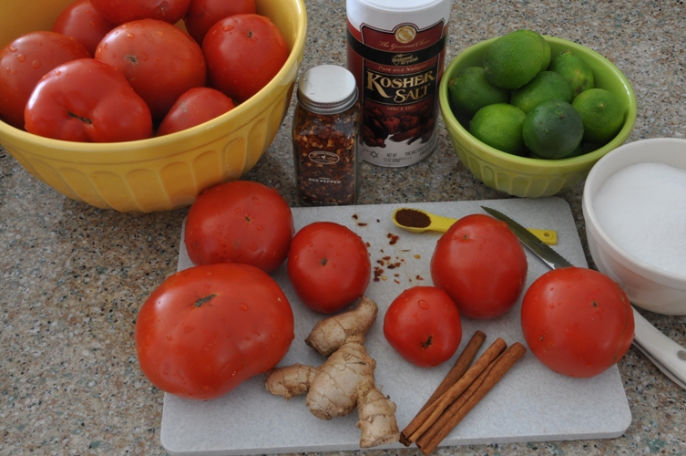 You can find the recipe for this tomato jam here.  It is really easy to make and we would strongly recommend giving it a try, especially for those of you who are just starting your canning careers.  It takes about 1/2 hour to prep the ingredients and is made much easier if you select large tomatoes.