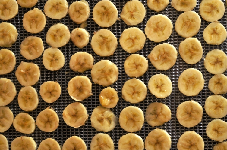 Thanks for the tip about using the egg slicer to get nice even banana slices. We also spray out banana slices with lemon juice to prevent the chips from getting dark in the dehydrator.