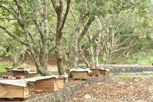 Situated in the middle of a lychee grove these bees have an abundance of food to feast on and seem to be thriving.  The lush jungle appears to be an excellent place for an apiary with wild flowers and fruit trees providing them a never-ending supply of food.