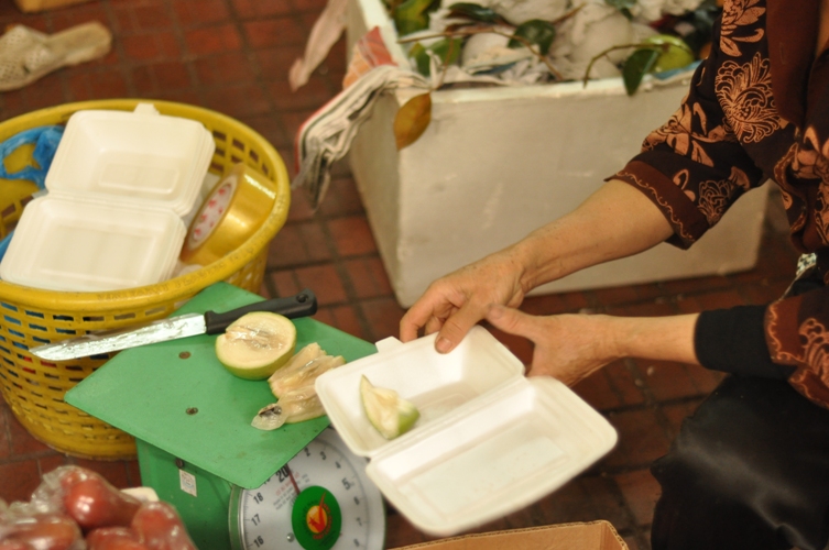 There were so many different fruits and vegetables surrounding us and the sights and smells from each stall left your head spinning.  Another interesting fruit is the fruit of a thousand hands (it has no single English word equivalent).  It tastes similar to a guava and is purchased mainly as an offering to the spirits in hopes of greater prosperity.