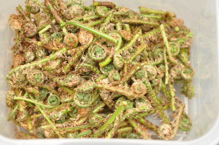 Fiddleheads are the furled fronds of young ferns and are an excellent tender veggie which can be prepared as a side dish or PICKLED to preserve and enjoy as a special treat in the months to come.