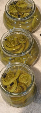 - Remove lid, let jars stand in the hot water bath for 5 minutes, remove jars, check seals, label, and store.