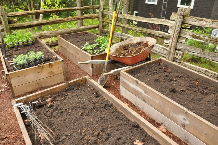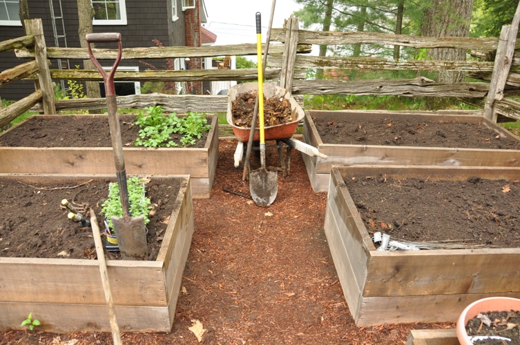 Lately, Matt and I have been busy catching up on all the things that slip through the cracks while you are away on a month-long journey. Now, back in the saddle and swing of things we’ve accomplished a number of our spring tasks. We have added the compost to our raised garden beds, weeded and turned them over, planted all our vegetables, purchased two new and amazing tower water stands, moved and spread tons (and I mean tons) of soil to re-seed our lawn, spread mulch over our flower beds, planted our annuals, and we are now finishing up a rather large section of hand railing. After this weekend, we should be able to breathe a sigh of relief and get back into the kitchen to prepare for the canning season ahead. Thankfully, everything here in Northern Ontario is a little bit behind (like us) and even our strawberries are just ready to pick!