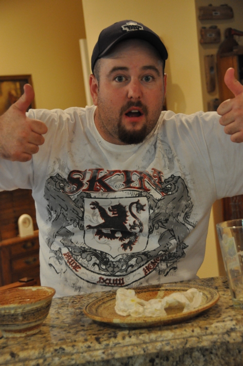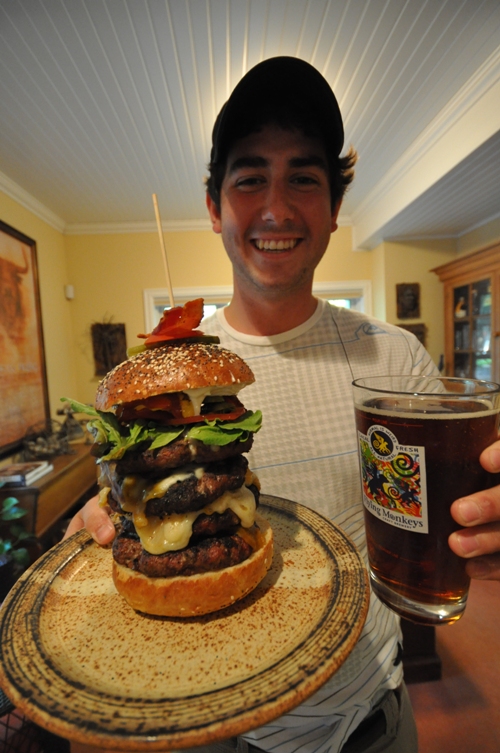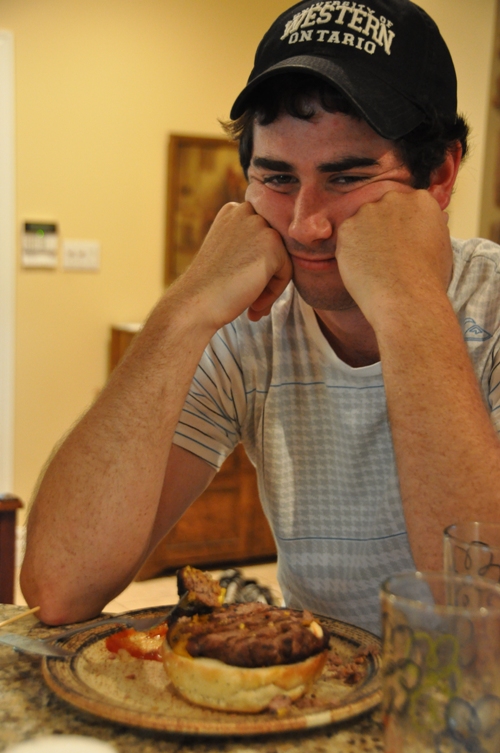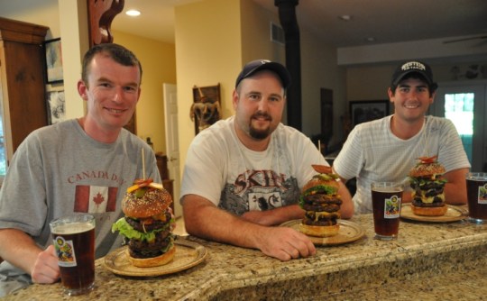 Okay…we are going to stray (slightly) from our regular CANNING programming to bring  you Man VS Common Sense ~ a Sunday afternoon eat-a-thon.  Yes, that’s right you heard it here first, Matt and the boys from work (Ben and Ian) decide to create their very own eating competition.  The first in what appears to be a series is hosted at our home…The 2 Pound Burger Challenge.
