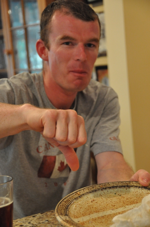 1. Each competitor must consume two pounds of ground beef.  Mmmm…delicious burgers.  The meat purchased from Stephen’s Butcher Shop  is the best in all of Muskoka.  Richard freshly ground 8 pounds of beef knowing full well Matt’s intention was to make some gigantic beef burger flame grilled and seasoned to taste.  Only the best for these competitors.