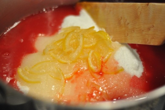 The set of this jelly turned out fantastic (if I do say so myself). I imagine it has a lot to do with the natural pectin present in these berries and the fact I remained calm. Often I either under cook or over cook my jellies but not this time. It’s a sweet, flavorful jelly and the lemon pieces really add to the overall taste by cutting the sweetness (even if they did float to the top).