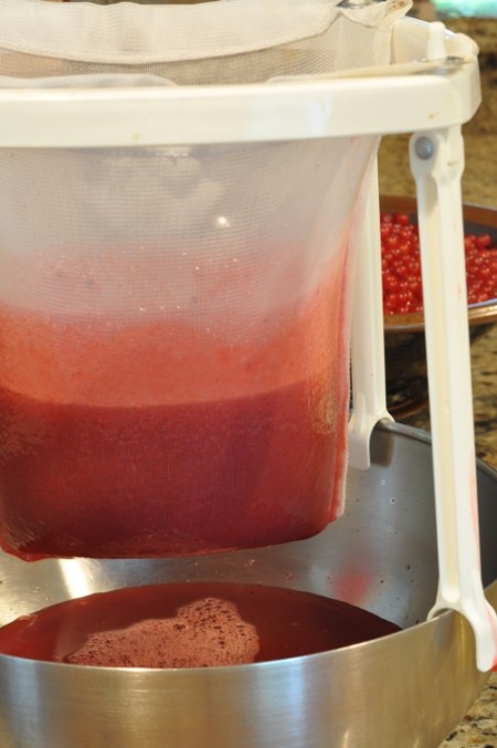 - Collect the juice by using a food mill or fine chinois sieve, use the back of a spoon to press the soften berries in the chinois sieve (the food mill method does all the work). Filter the juice a second time through a wet and wrung out jelly bag collecting only the juice.