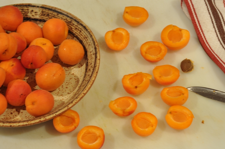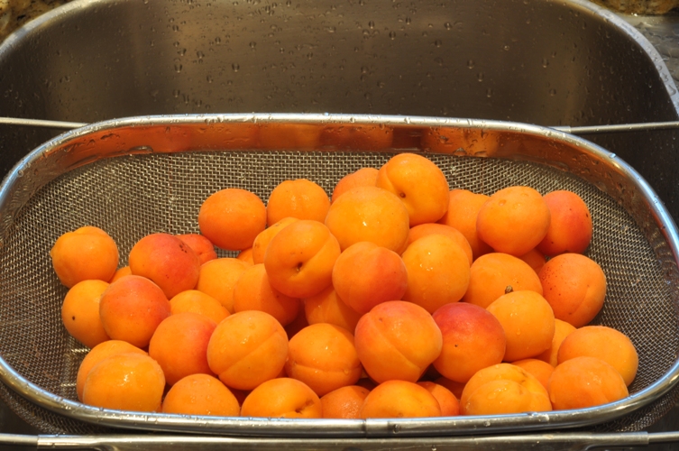 - Wash apricots well, cut in half, remove pit, and place in pretreatment solution.