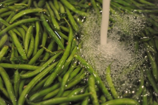 2. Wash beans well and remove any blossoms, stems, and leaves.