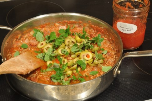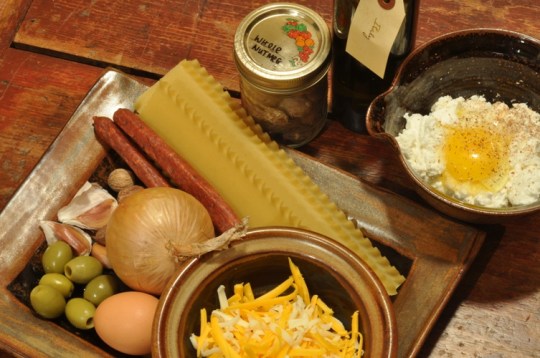 Lasagna is one of those meals that instantly brings memories of childhood flooding back to me.  My mom was the queen of the layered, cheesy, runny “homemade” sauce lasagna that would leave you smacking your lips and licking your plate when backs were turned.  And, until Matt began making lasagna with our homemade tomato sauce, I never thought I would ever taste one as good as my mamma used to make.  But, she’s now met her match, forced to throw in her apron because Matt’s lasagna is just as good…maybe better but don’t tell her that.  I swear the secret to great tasting lasagna isn’t all the extras you add to make it your own but the fresh home canned tomato sauce.  Okay, I’ll concede better ingredients help too, but without the sauce you’ll never compete with mama.