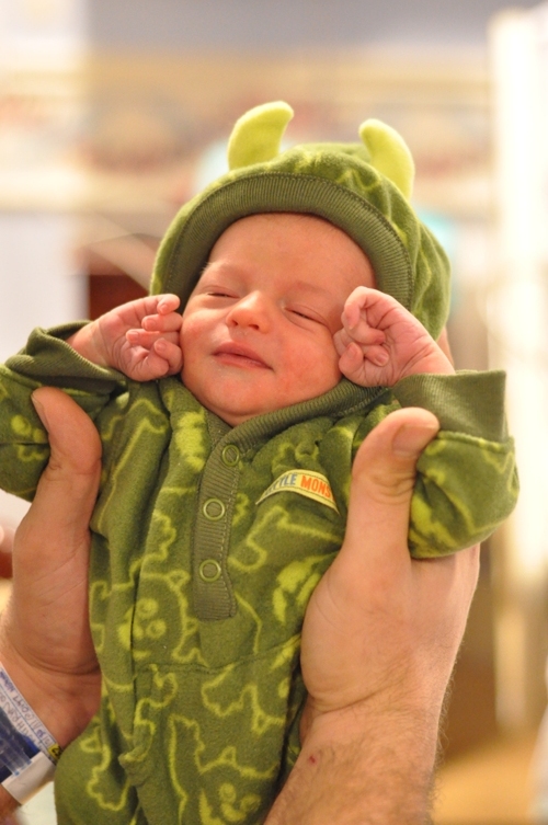So far, my tricks are eating, sleeping, pooping, and crying.  Soon to improve.