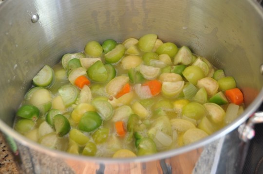 About 16lbs of tomatillos were made into Tomatillo Mexican Salsa (a true must) leaving another 14lbs to contend with. We concluded soup was a quick and easy way to put up the remaining tomatillos.