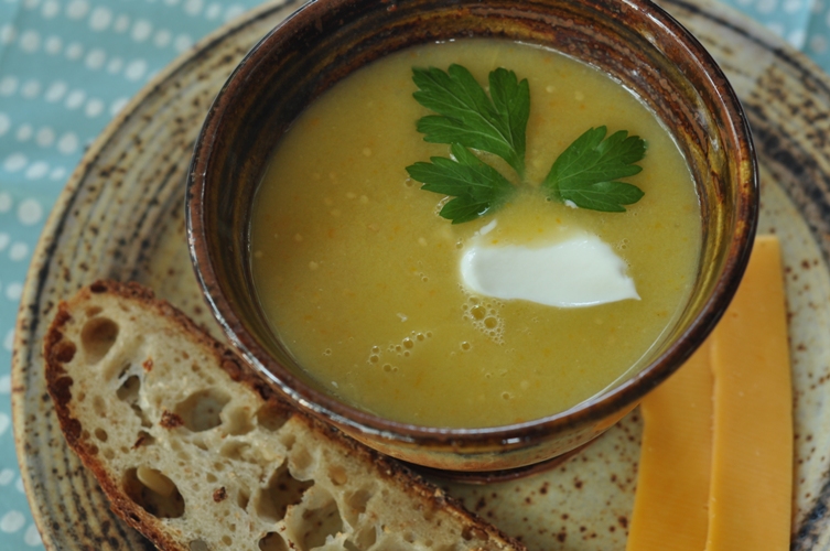 - Using an immersion blender or working in batches in a food processor purée the soup. Tomatillos’ tartness is balanced out with heat so be sure to taste the soup and if it requires more fire add some hot sauce, cayenne pepper or chili flakes. Do it bit by bit. Personally, I can’t handle too much heat so recipes presented here are always adjusted to suit my tastes (a comprise my husband adjusts when food is served by pouring on the Franks). You can always spice it up more when served.