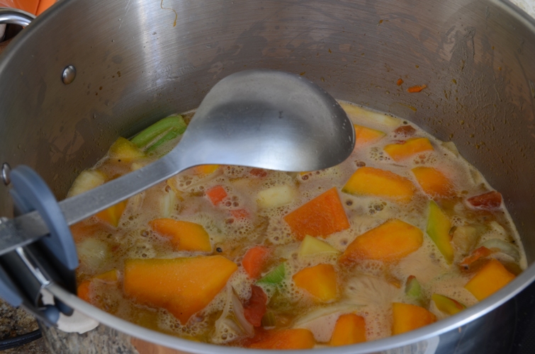 It’s common practice around these frigid parts to spend the winter months huddled inside by the fire making and consuming copious amounts of soup.  We did it last year and we vowed to do it again this year.  Some of the recipes we’ll share evolve out of an abundance of gifted ingredients.  Like this next recipe.  Our dear friend, arrived to our place for a dinner party carrying  multiple large boxes of varying home-grown squash.  Score!